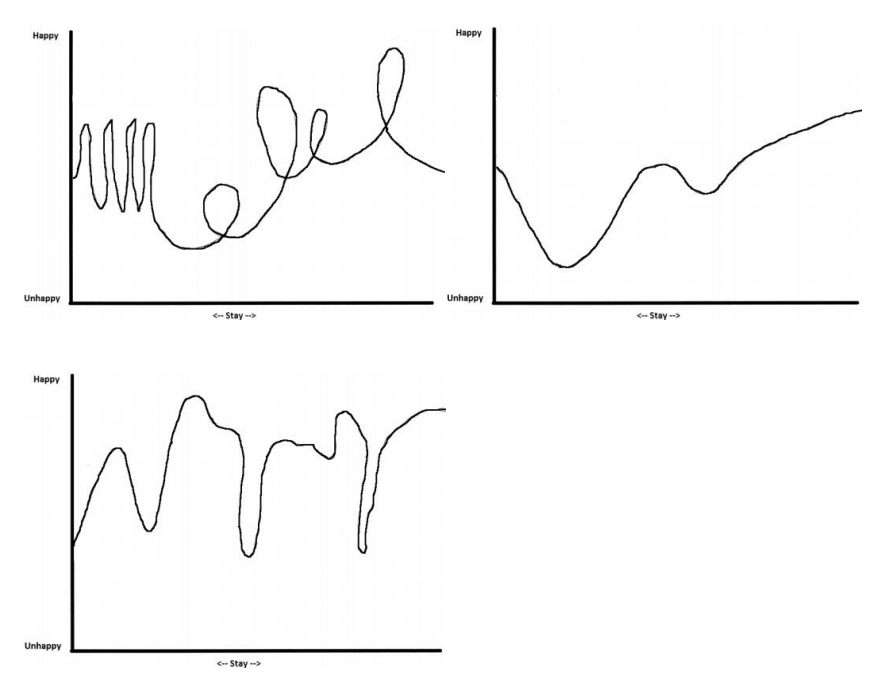 However, between the honeymoon and long-term adjustment, the line is likely to look a lot more like a heart rate monitor than a singular clean down and up slope. I found a thesis in which they had students draw their own charts! I love the resulting variability of their designs (Jansen, 2015).